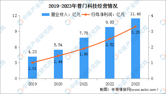 2023年普门科技实现营收11.46亿元,同比增长16.55%,归母净利润3.29亿元,同比增长30.66%。